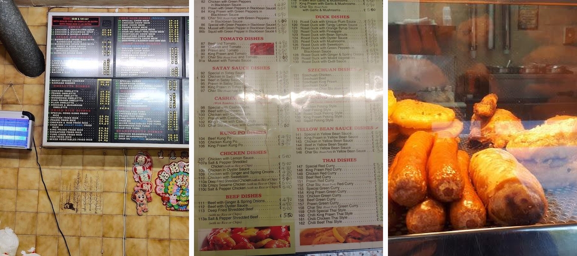 Expect a diverse menu that includes classic fish and chips, various Chinese dishes, and a range of sides like pies and garlic dishes.
